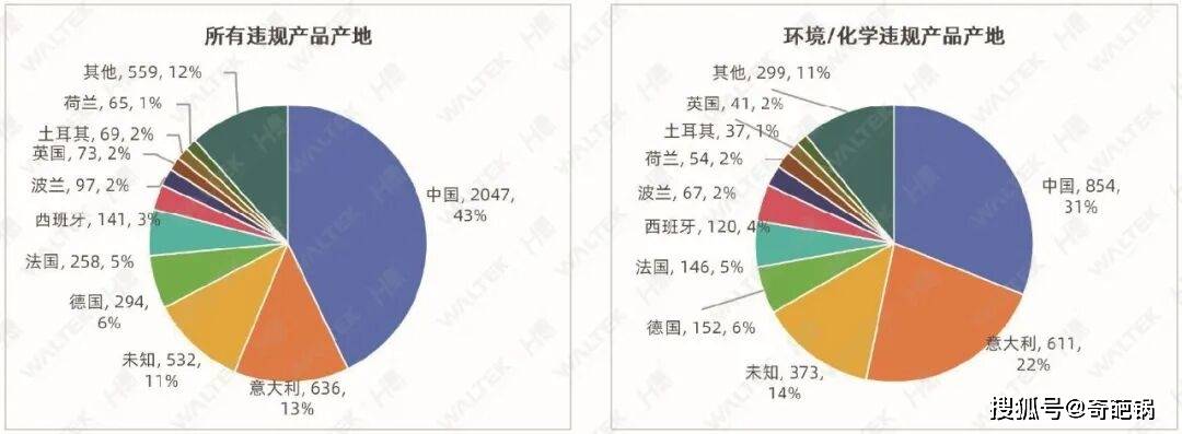 2025年RAPEX累计传递4771例违规产物,同比增加14。9%,涉及化学及风险的案例有2754例,同比增加27。7%,正在被传递的违规产物中,产自国内的产物占全数违规产物的 43%;正在/化学类违规中,其占比为 31%,均较着高于其他国度。违规产物的产地分布环境如下: