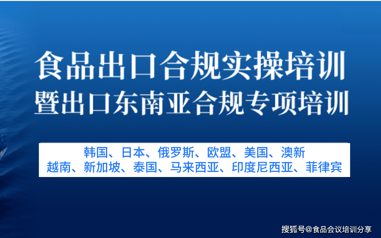 为帮帮食物出口企业能更好领会各出口国的律例政策和监管要求环境,熟知食物出口流程,尽可能规避商业过程中因为对出口国相关律例政策不领会而发生的风险。为此,食物伙伴网将举办“食物出口合规实操培训暨食物出口东南亚合规实操专项培训”,为食物出口人供给一个进修和交换的平台!